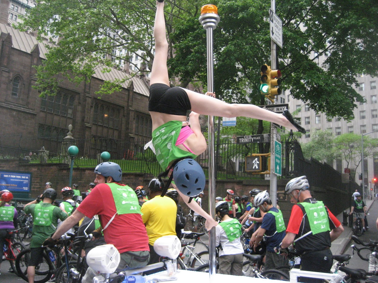 Two things stood out as bad amidst an extraordinary ride (for someone born and raised here, riding a bike on the FDR Drive, BQE, Gawanus Expr., Verrazano etc. is more than a little strange, and disheartening in that I rode many of the sections faster than I would traverse them in a car on the average trip…). One was the walking of Central Park. Too much congestion led to almost walking the entire park. It was not a pleasant stroll, though Jenni ran into a student from a recent bike class (unfortunately in need of help with a flat which we could not exactly provide due to equipment failures). The second was that onramp inclines led to large backups because people seemed intimidated by the ramps. Without even trying they would bounce off their bikes and start pushing as if there was no other choice. I think some encouragement might help.